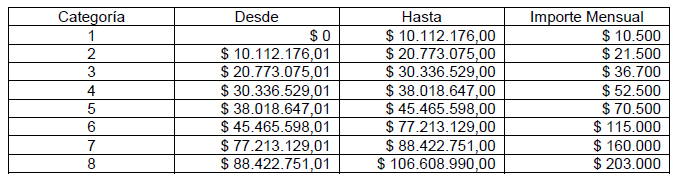 – Se incrementa a $106.608.990 el monto máximo de ingresos brutos totales obtenidos en el período fiscal inmediato anterior, considerado para poder adherir al Régimen Tributario Simplificado.
